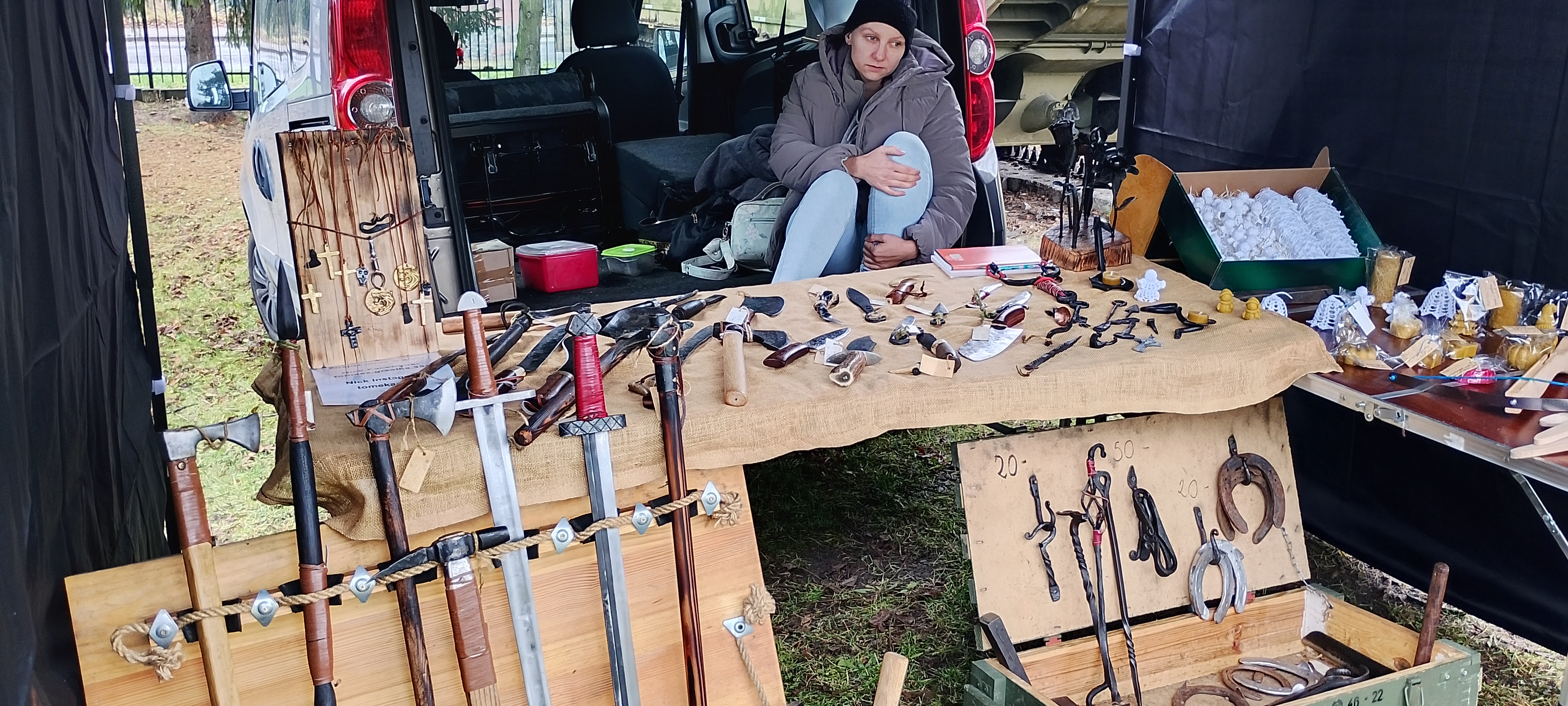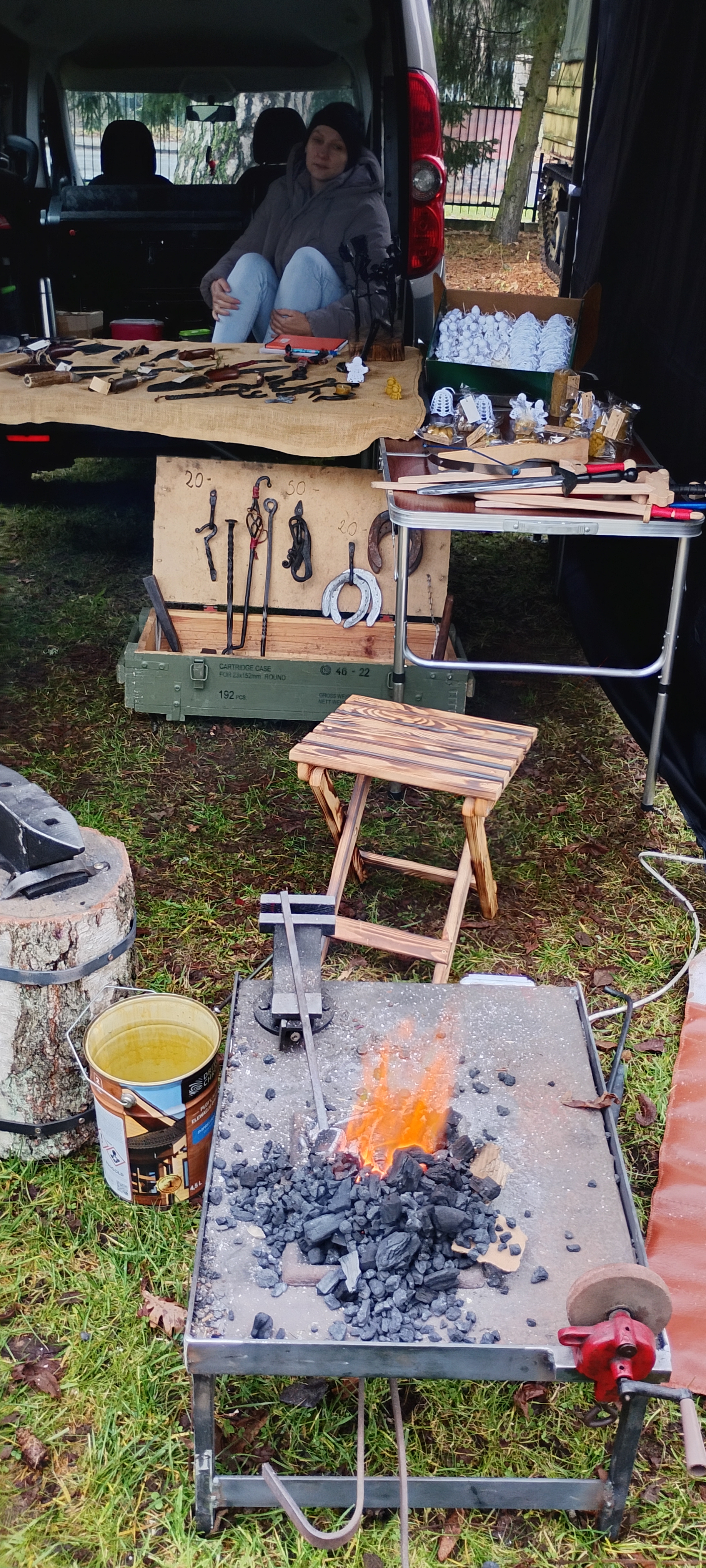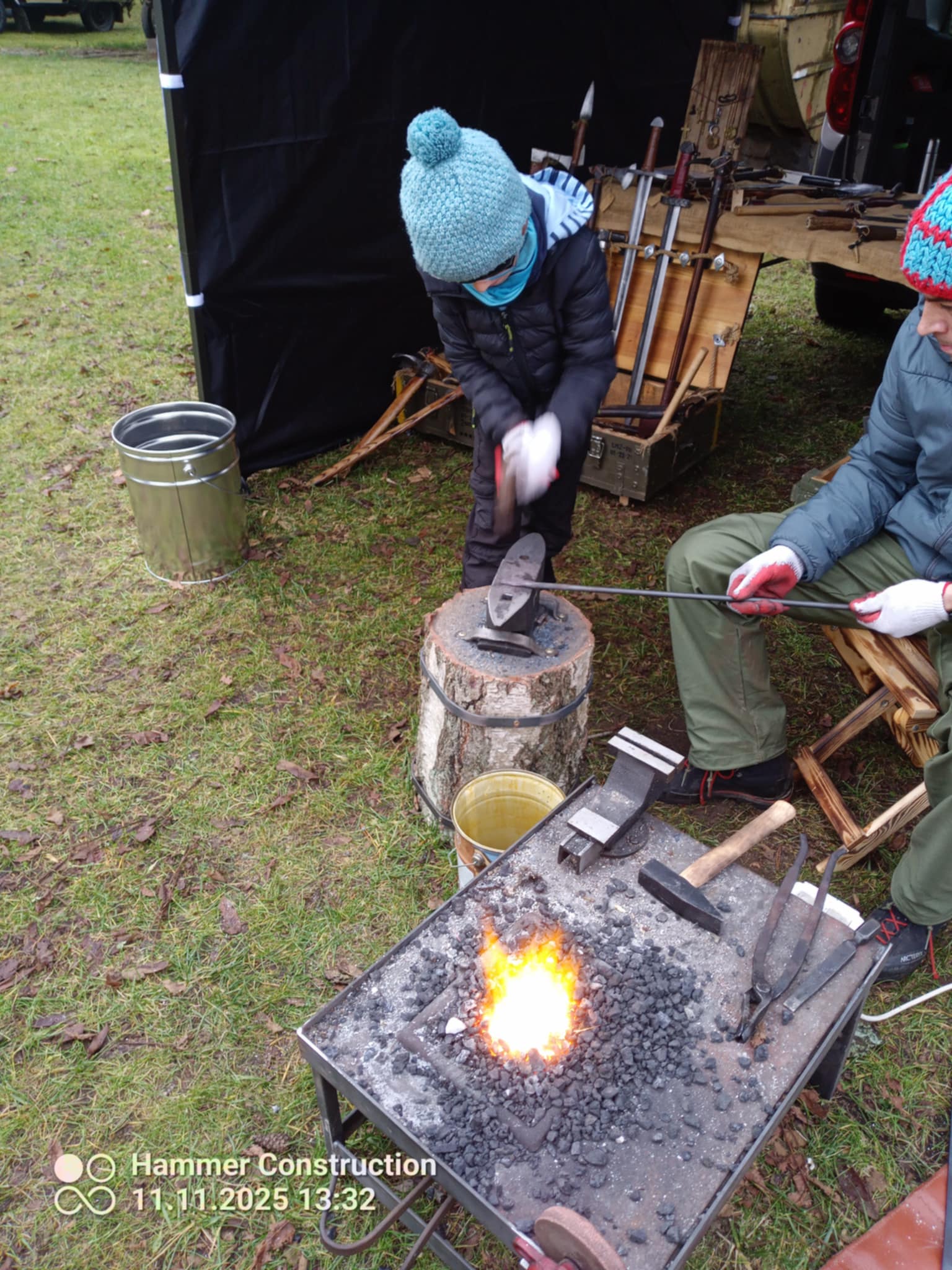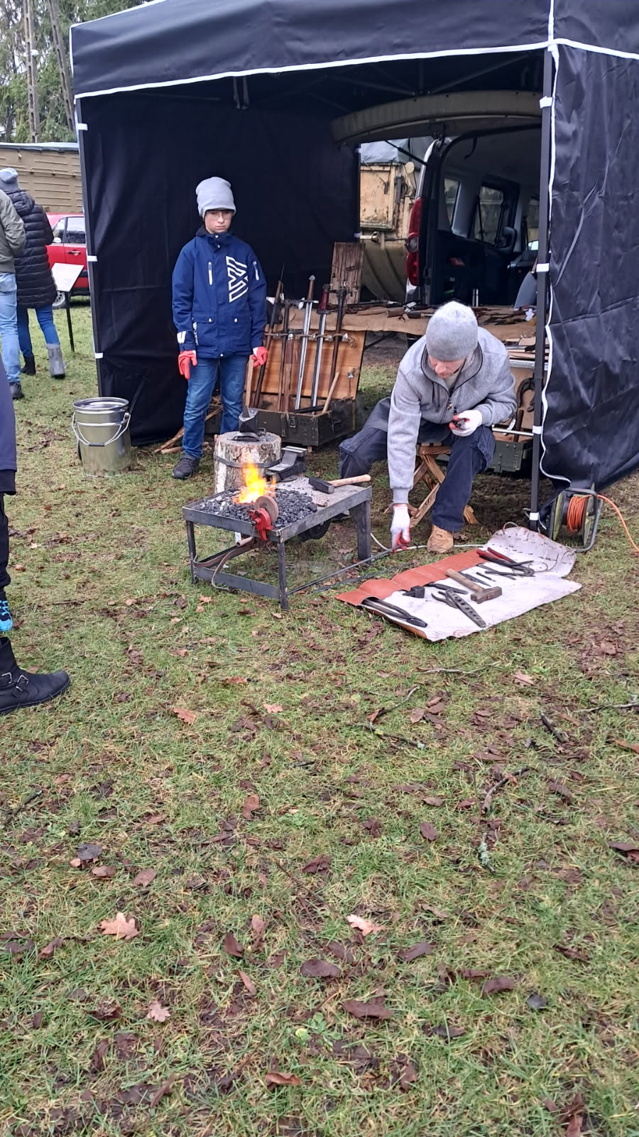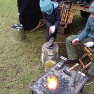 Zainteresowanie towarzyszyło pokazom kowalstwa i pracy Tomasza Grzelki.